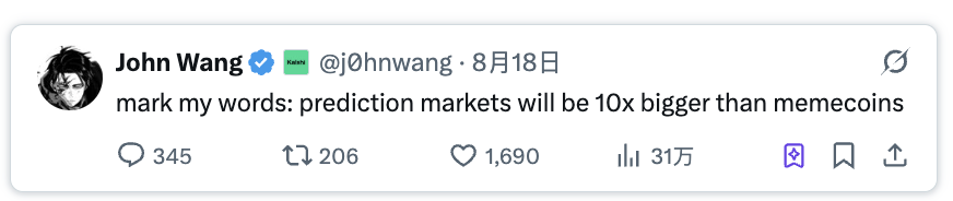 John Wang:记住我的话,预测市场的规模将是 Memecoin 的 10 倍!