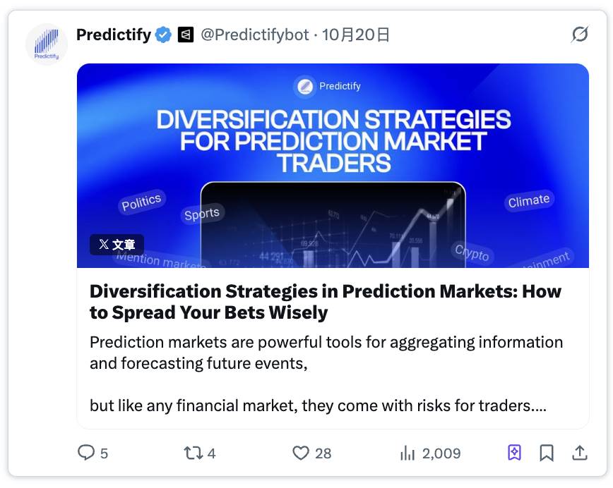 以下是 @Predictifybot 提供的一篇关于如何分散预测市场投资组合的优质文章: