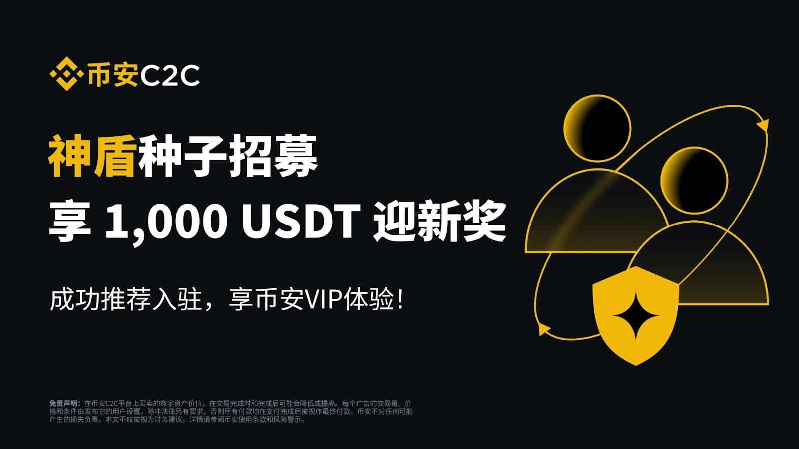 币安C2C:参与神盾种子招募计划,享1,000 USDT迎新奖或币安VIP体验!