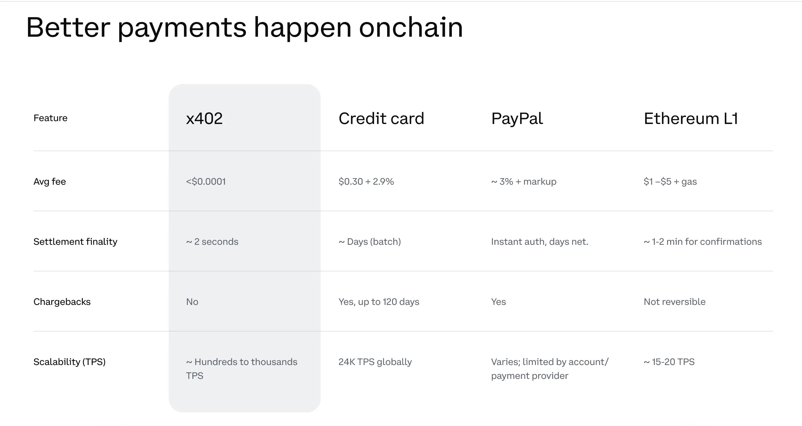 4. 数据对比:为何x402优于传统支付轨道?