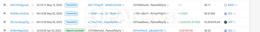 过去8个月,通过该地址抛售的JUP代币数量超过3000万枚。
