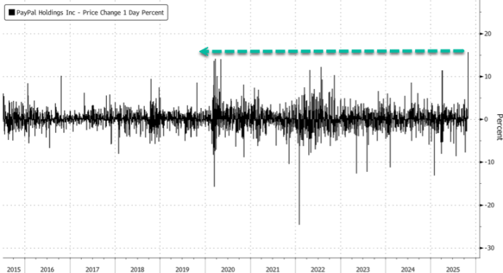 这一消息极大地提振了投资者信心,推动 PayPal 股价在美股盘前交易中一度飙升 14%,扭转了今年以来近 18% 的跌势。