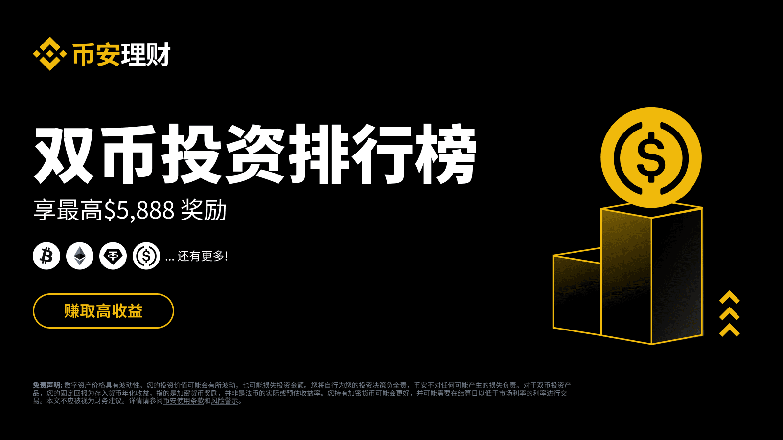 币安理财为所有双币投资用户推出11月月度排行榜计划,用户最高可享5,888 USDC奖励。