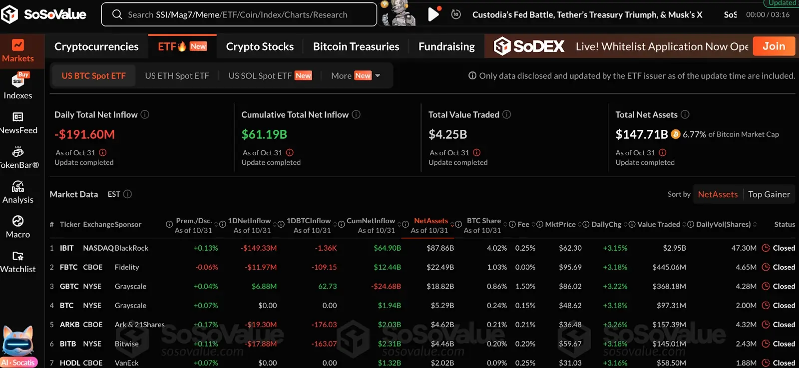 据统计,在10月27日-10月31日期间,美国比特币现货ETF净流出:8亿美元;截止到10月31日,GBTC(灰度)共计流出:246.38亿美元,目前持有188.33亿美元,IBIT(贝莱德)目前持有884.21 亿美元。美国比特币现货ETF总市值为:1490亿美元。