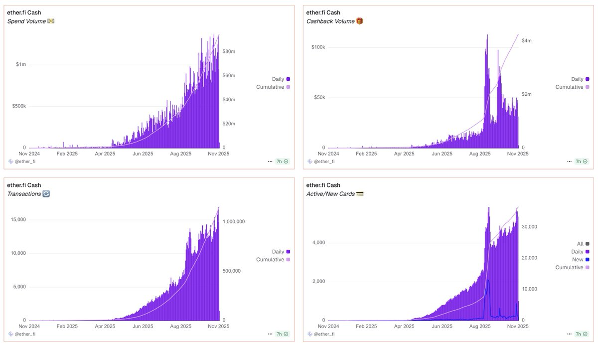 自 2025 年中期推出以来,Ether.fi Cash 已成为市场上最活跃的加密卡产品之一。