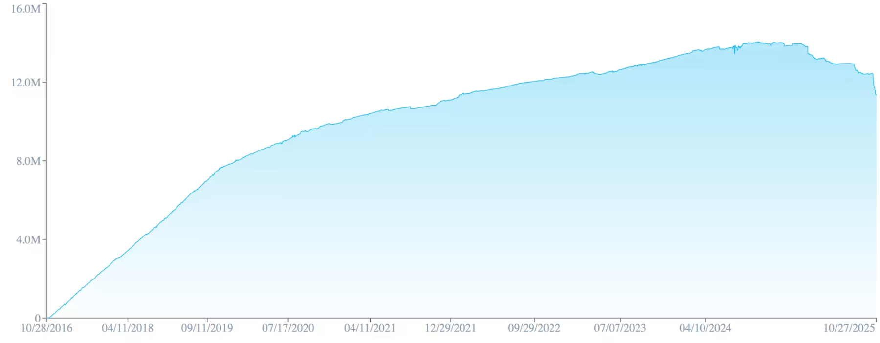 透明供应量则减少了近 300 万 ZEC,从年初的约 1400 万降至目前的约 1140 万(约占总供应量 70%)。