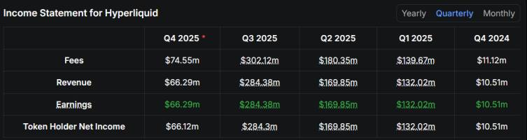 收入模式: Hyperliquid采用高度可持续的代币经济模型,其财务数据强有力地证明了该模型的有效性——平台将产生的绝大部分手续费(如图表中2025年第三季度高达3.02亿美元的费用)几乎全部转化为“代币持有者净收入”(同期为2.84亿美元),并明确用于$HYPE代币回购销毁;这种将平台成功与代币价值直接挂钩的通缩机制,不仅在牛市中能实现财富的爆炸式增长(如一年内收入激增逾27倍),在熊市中更能通过持续的回购为代币价格提供坚实支撑,因而显得极具吸引力。