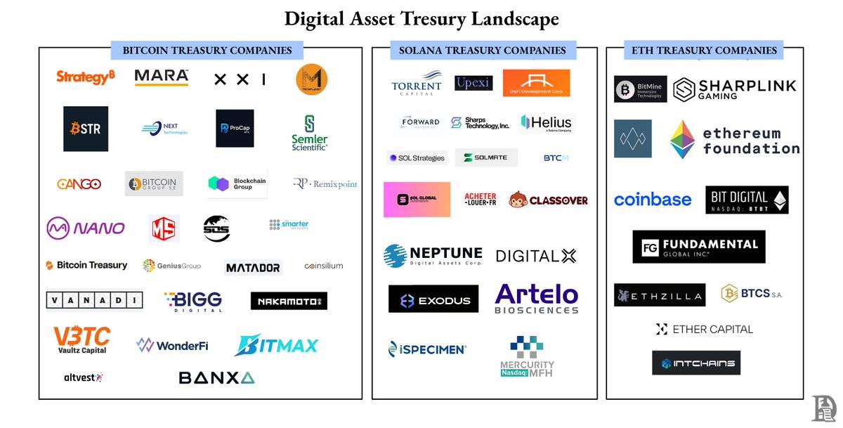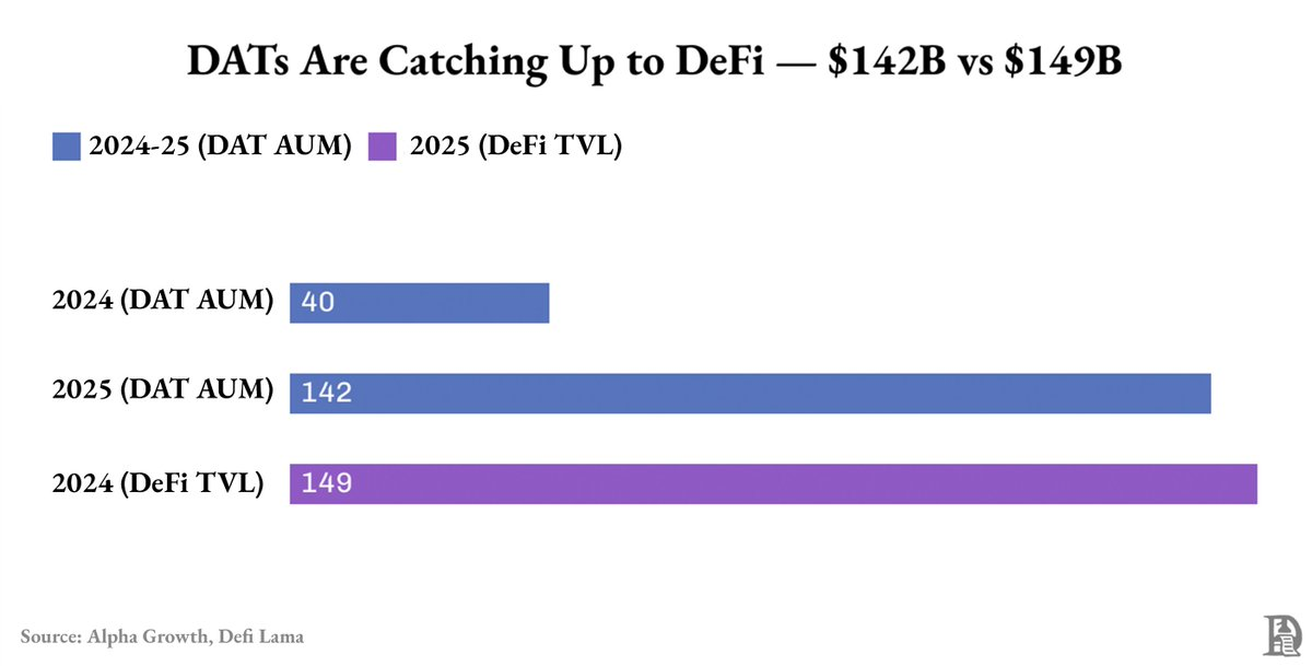 而在这些巨头之外,大多数数字资产储备公司(DATs)都处于流动性稀薄和溢价脆弱的状态,它们的估值随着市场波动,而非自身表现而起伏。