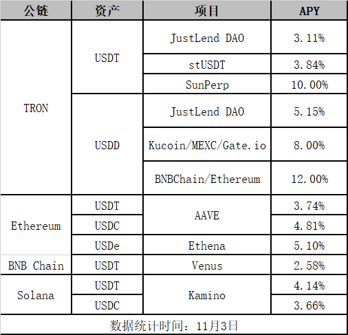 2、RWA收益:通过RWA产品stUSDT锁仓USDT,可间接捕获传统金融市场的资产收益,如美国国债, 11 月3日年化收益达3.84%。