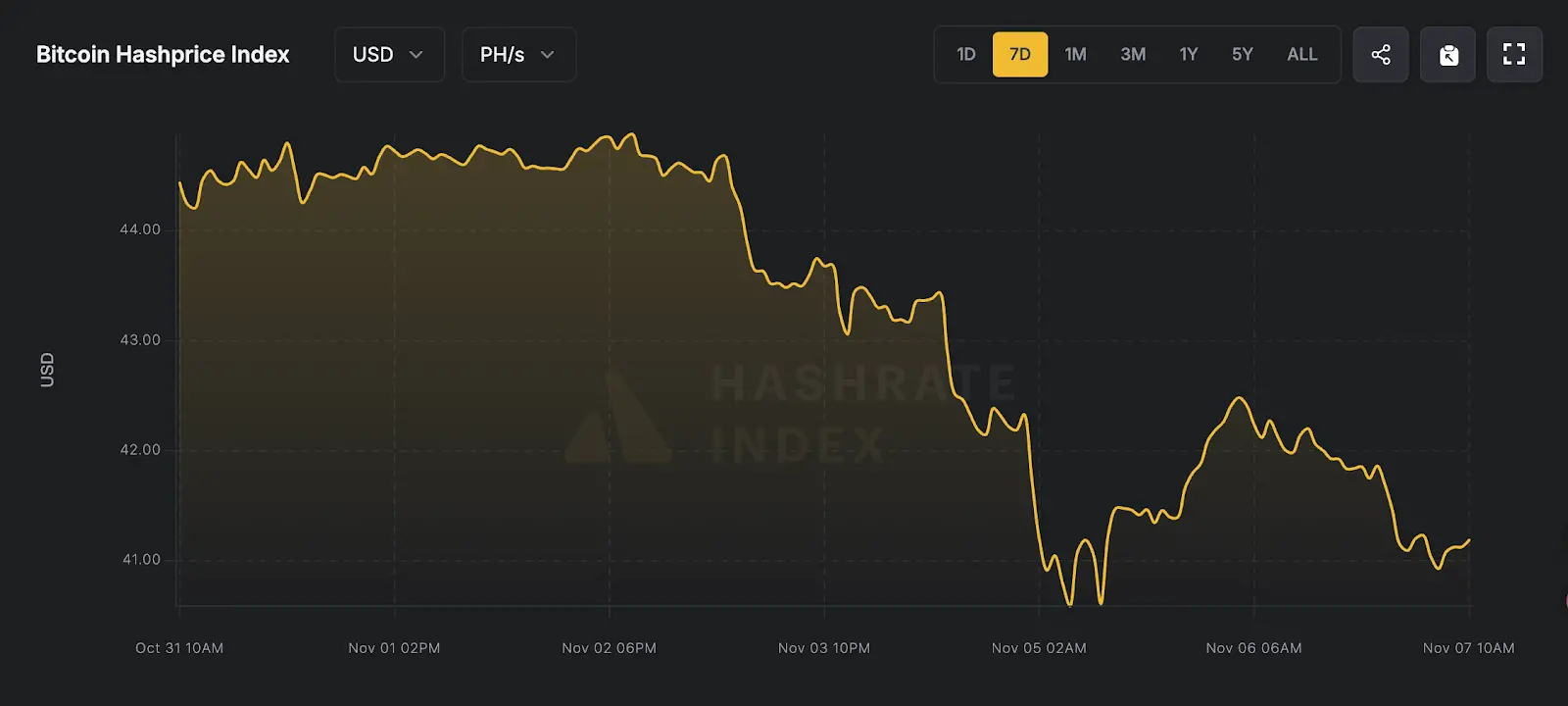 11 月 01 日:本周高点 44.79 美元/PH/s/天