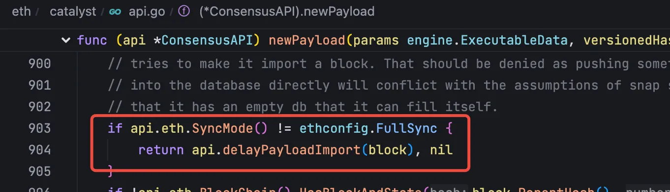 如果当前执行层还在同步状态,那么暂时就无法接收新的区块: