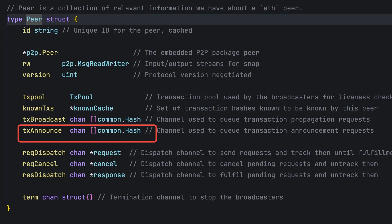 广播中只发送 hash 的交易会被放到 peer 节点的这个字段中: