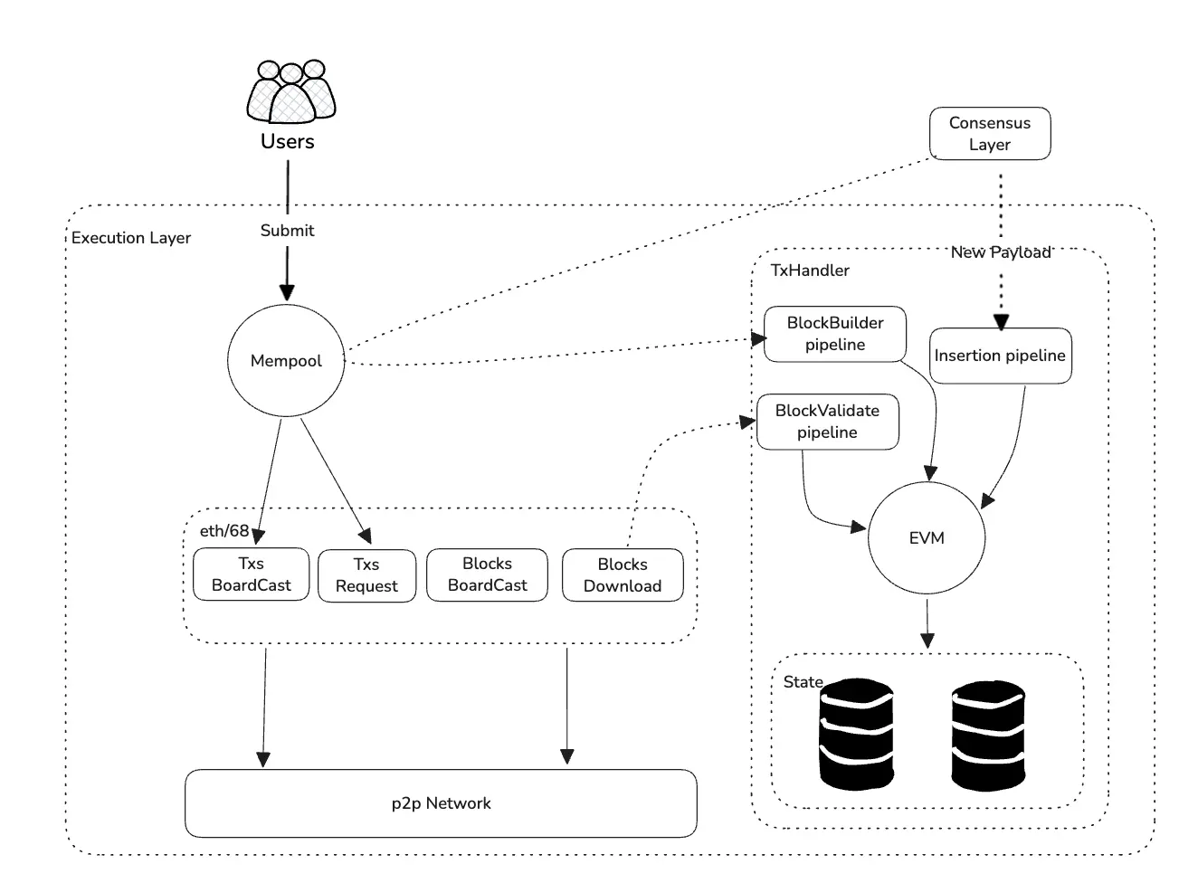 之所以 Blob 交易需要和其他交易分开管理,是因为 Blob 交易中有可能会携带大量的 blob 数据,其他的交易都可以直接在内存中管理和同步,而 Blob 交易中的 blob 数据则需要持久化存储,所以不能使用和其他交易一样的管理方式。