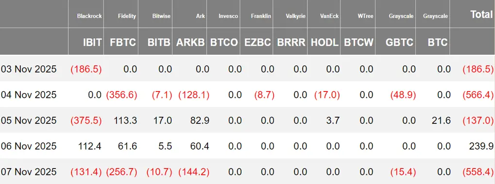 上周 6 只 ETF 处于净流出状态,流出主要来自 IBIT、FBTC、ARKB,分别流出 5.81 亿美元、4.38 亿美元、1.29 亿美元。