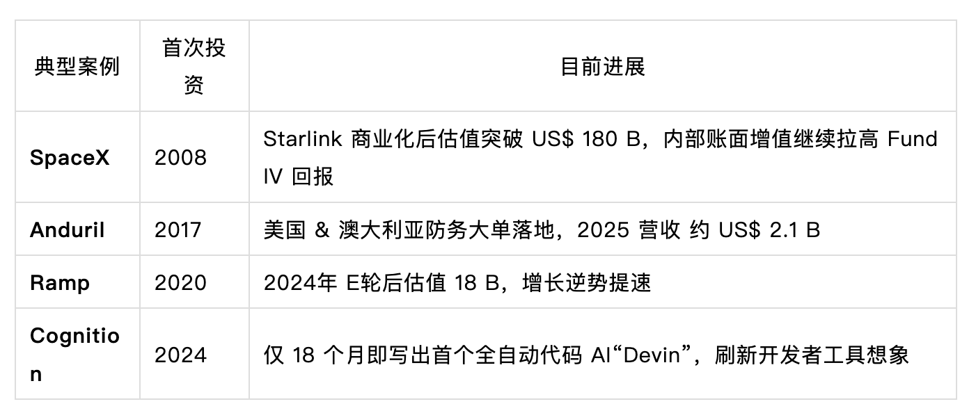 大手笔下注依旧是 Founders Fund 的胜利密码。无论是在早期参与、后续连续加码,还是在退出节奏上精准把控,都体现了其策略的“专注与耐心”。
