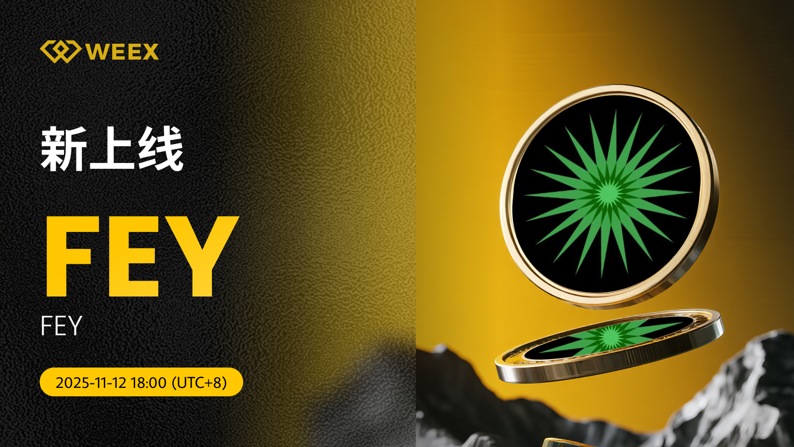 FEY (FEY) 现已上线WEEX! Weex 2025年11月12日 08:57 微信扫一扫分享到朋友或朋友圈 尊敬的WEEX用户:FEY/USDT交易对正式上线WEEX。具体安排如下:充值:即将开放交易:2025年11月12日18:00(UTC 8)正式开放提现:即将开放立即交易:FEY/USDT FEY (FEY) 更多信息:该代币由@0xWiz_和@atareh推出。 官网X账号交易手续费