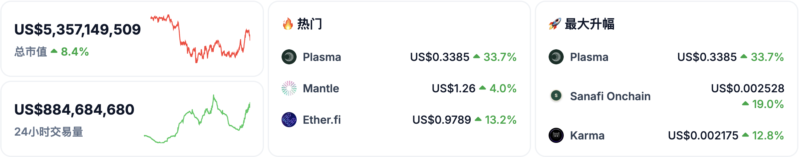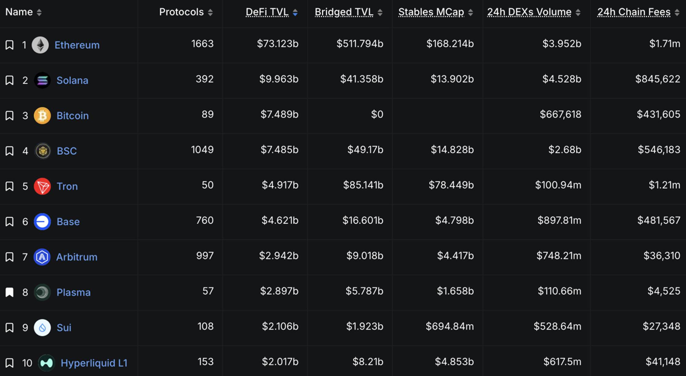 根据 DefiLlama 数据,Plasma 生态当前排名第八,其原生代币 $XPL 已完成 3.73 亿美元的超额认购。