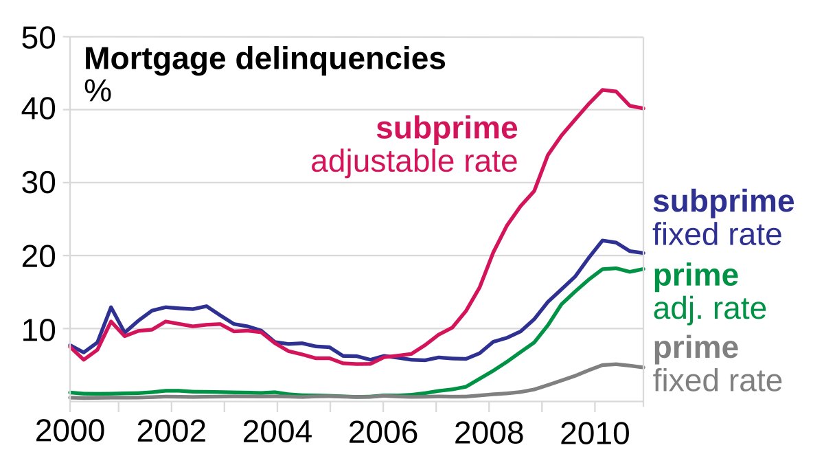 借贷主体的信用状况不同:2008 年借贷方:次级信用个人。引爆危机的火药桶是那些没有稳定收入、信用记录极差的个人借款者,他们从一开始就不具备真正的还债能力。
