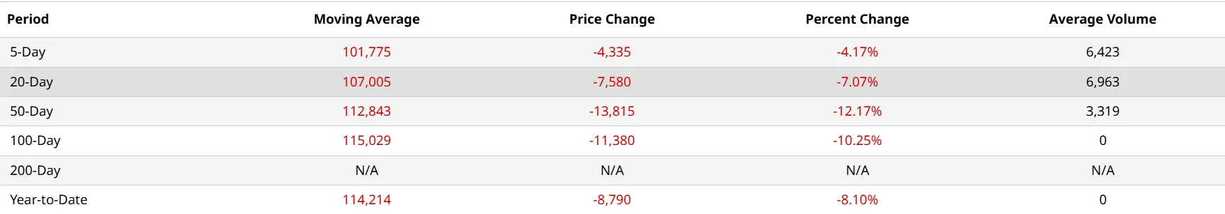 支撑位:$97,500-$100,000 区域,目前价格接近下沿支撑。