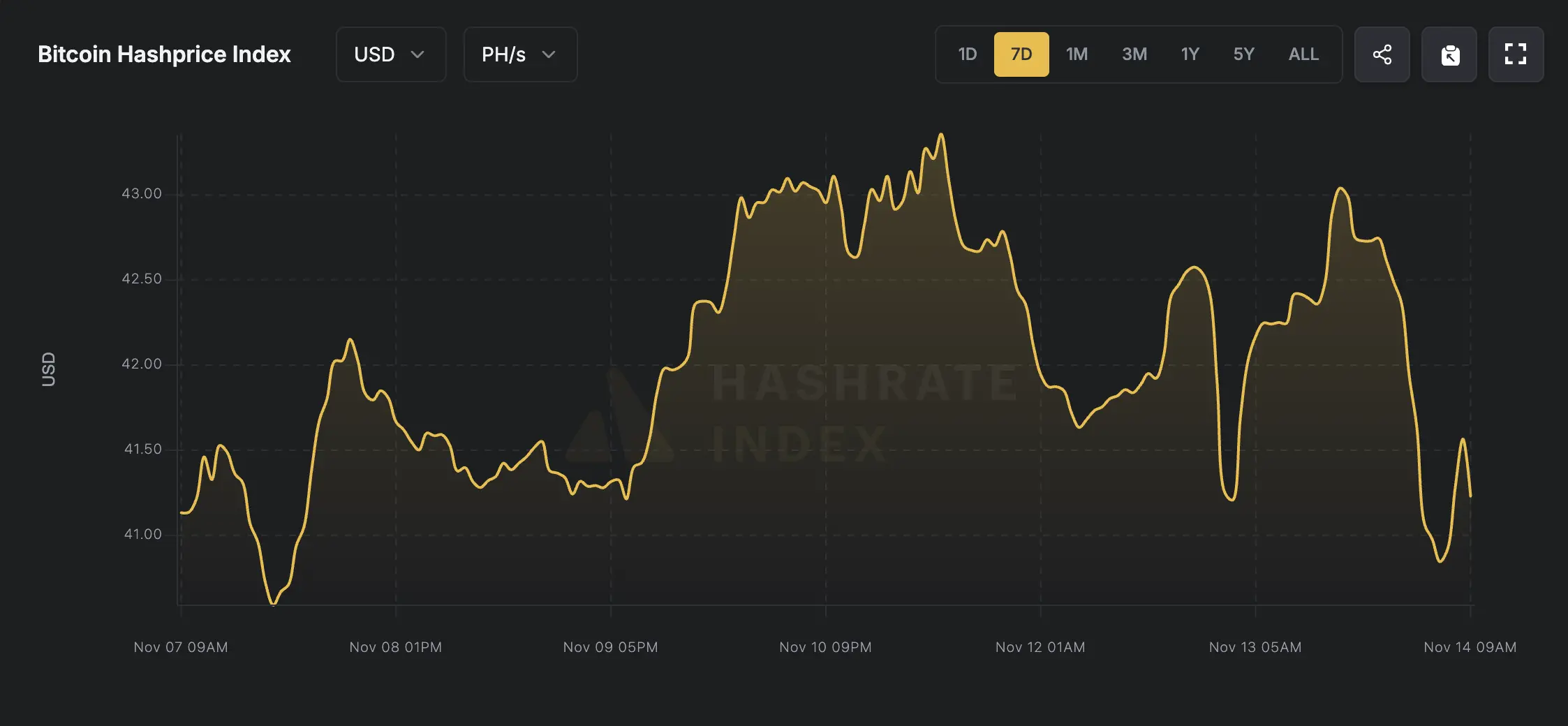 11 月 11 日:本周高点 43.35 美元/PH/s/天