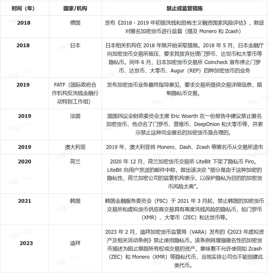 此外,在全球机构化 DeFi 的推动下,隐私的需求正在从“匿名交易”演变为“可选择性透明”。机构希望监控系统性风险和链上整体杠杆,但不希望自己的仓位、策略和流动性暴露在竞争对手面前;高净值客户也希望利用链上结算与 24/7 流动性,但不希望自己的资产规模被链上扫描工具完全公开。随着链上国债、货币市场基金、机构借贷池等产品出现,一个“可审计但不完全透明”的金融网络正在逐渐成形。隐私链、隐私 L2 和隐私模块因此具备被金融机构当作基础设施采用的可能性。未来的隐私不再是局限于小众叙事,而是面向机构的“可选透明层”。从这个意义上讲,隐私赛道存在跨越牛熊周期的长期成长支柱。然而,隐私币赛道并非没有风险,其中最核心的系统性风险来自监管环境的变化。在过去几年,隐私币一直处于“模糊地带”:它们本质上是提供隐私的技术工具,而非非法用途的专属载体,但监管部门往往将隐私增强工具与非法资金流动联系在一起。欧盟 AMLR 已明确将高度匿名加密资产纳入重点监管对象,一些地区正在讨论禁止隐私币在本地交易所上市;美国等国家也不排除对 mixer、匿名钱包或部分隐私协议采取更直接的制裁行为。在此背景下,“合规隐私”本身是一种动态博弈:监管是否接受 ZEC 式的查看密钥机制,以及金融机构是否愿意采用“选择性披露”模式,都需要时间验证。一旦主要司法辖区实施更激进的限制,整个隐私赛道都可能经历短期内的剧烈估值回调。