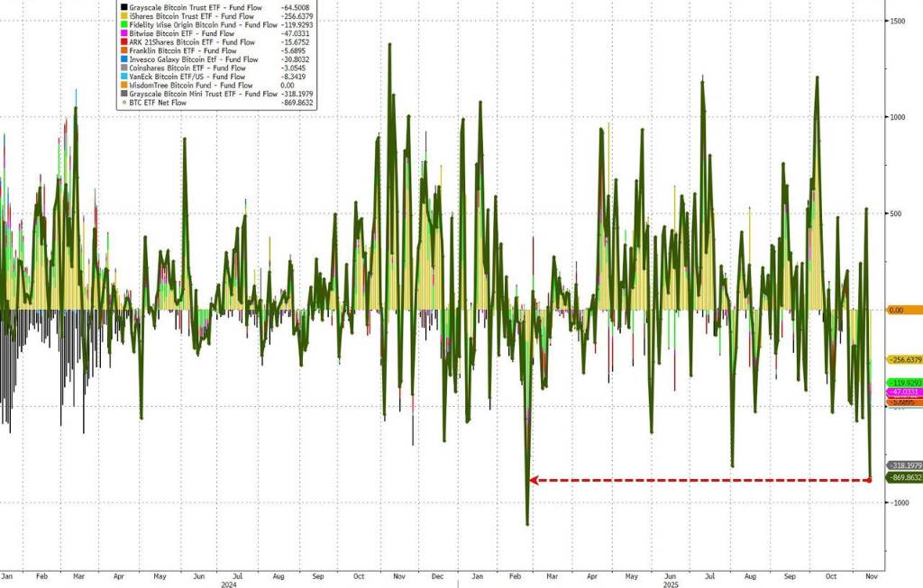 周五(11月14日),美股市场出现戏剧性反转,在经历了开盘初期的恐慌性抛售后,资金抄底科技股,纳斯达克和标普500指数在触及关键技术支撑位后强势反弹。而黄金在盘中最多狂泄超150美元之后,也反弹至4080美元附近,但比特币却成为明显的例外:当日下跌5%,跌破94000美元关口,创下6个月新低。