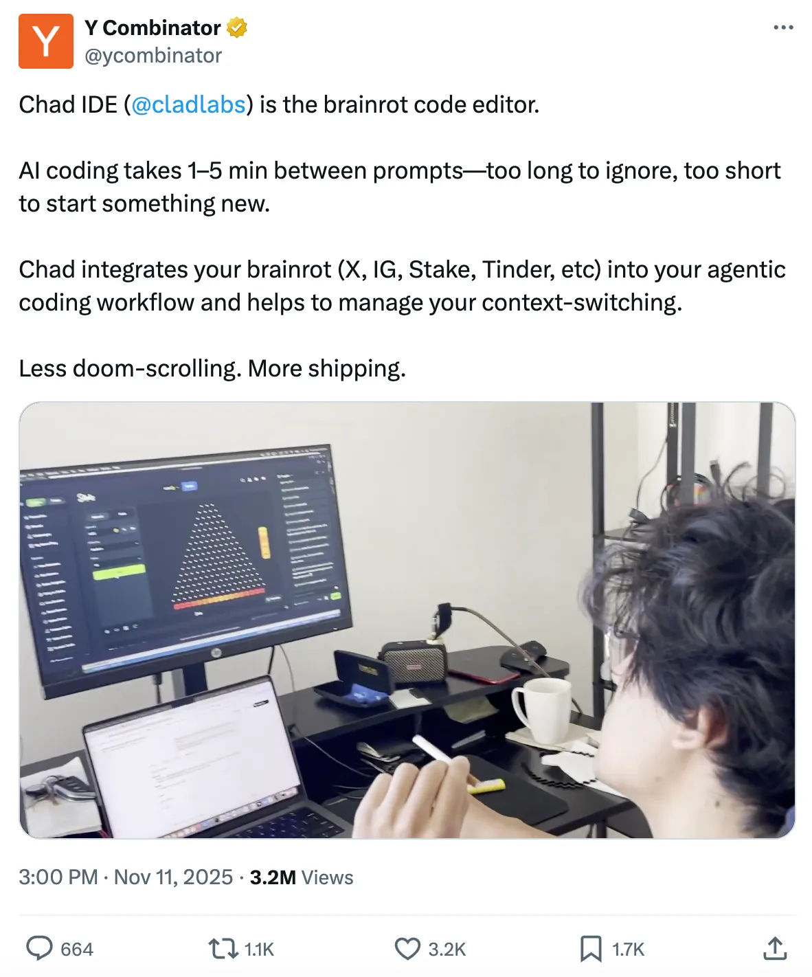 上周,YC 宣布了其最新的投资之一:Chad IDE:一个“侵蚀大脑”的项目。