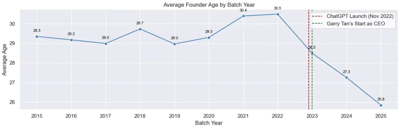 1.年轻化: YC 创始人的平均年龄已从 29-30 岁下降到现在的约 25 岁