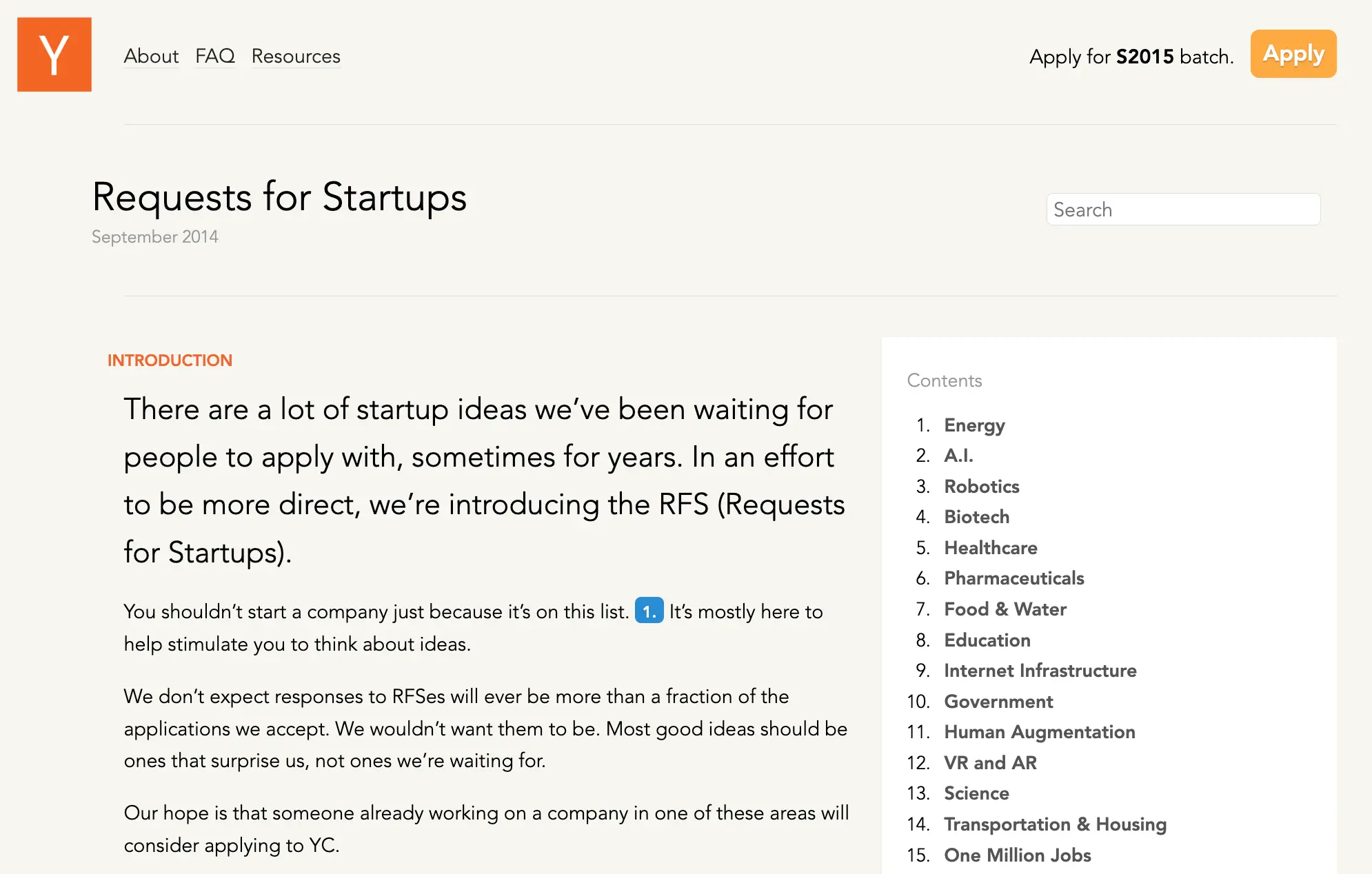 我不想仅仅为了创业而创业,我希望它能更有意义,去找到一个值得解决的问题。在寻找有意义的问题时,我偶然发现了 Y Combinator(YC)的 RFS 清单,即“创业提案征求”。
