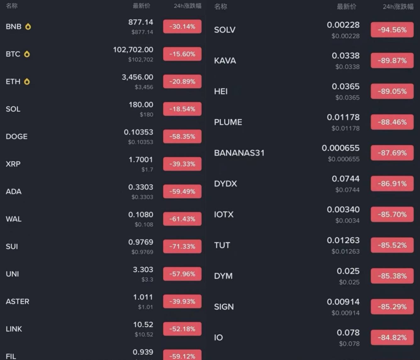 那些在 12 万还在喊「14 万见」「ETF 大牛市起飞」的人,就是最先被埋的。他们在高位加仓、重仓,杠杆比例偏高,价格稍有风吹草动,爆仓会自动触发连锁反应。其次就是自以为安全的低杠杆。就像这次 10 月 10-11 日的闪崩一样,笔者也是本次 1011 黑天鹅低杠赌狗之一「币本位、3X 合约、逐仓开仓即爆仓」。多账号仅仅几分钟,邮箱被轰炸似接连收爆仓信息,一击穿就横向扩散。