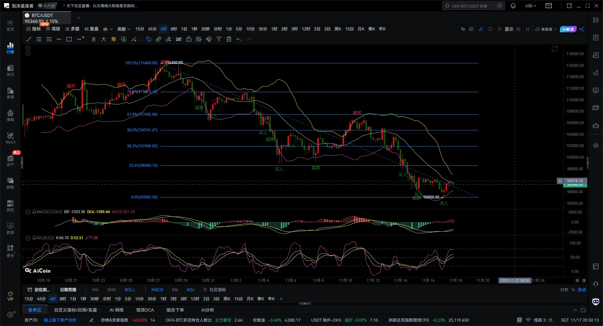 3.极弱下跌路径:如果跌破93000,可能下探90000-92000区域,但当前技术面支持度低。