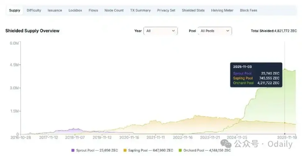 综合以上 5 大优势来看,ZEC 自然而然地成为了众多 BTC 持仓巨鲸、原教旨主义者、抗审查资产拥趸们进行「敏感资产迁移」的首选标的。这一点,从多重数据也可以得到佐证。