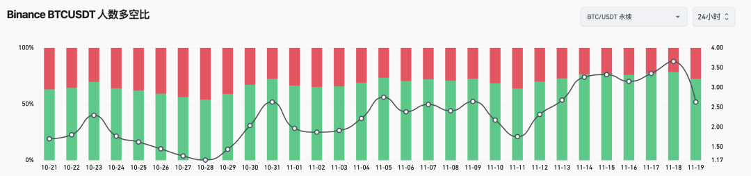 期货多空比:2.4,市场情绪偏贪婪。散户情绪多为反向指标,0.7以下比较恐惧,2.0以上比较贪婪。多空比数据波动大,参考意义削弱。