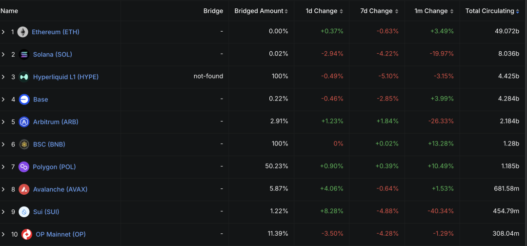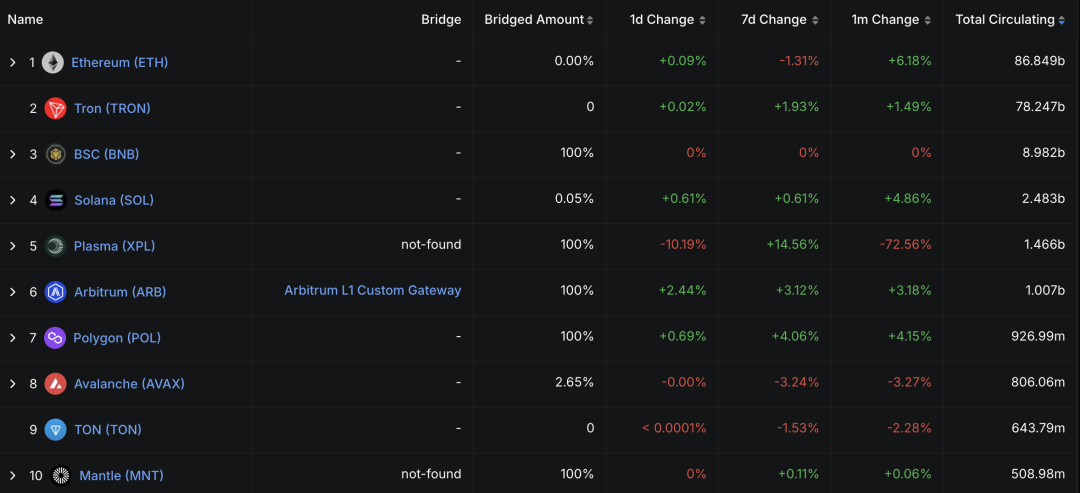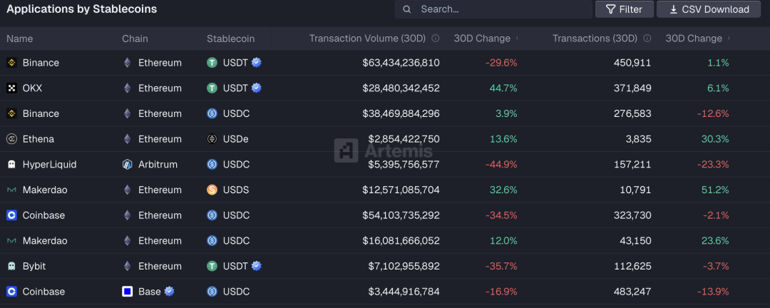 近30天USDC在 POL 链和 BNB 链出现较为显著的增幅,分别为10%,13%,主要由链上预测市场需求导致。