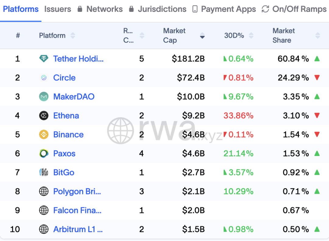 全球稳定币总量:$303.5B,周环比下降0.5%,连续一个月下降。市场格局方面,USDT 占比61%,USDC占比24%。