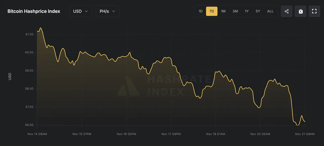 ● 11 月 21日:本周低点 35.99 美元/PH/s/天