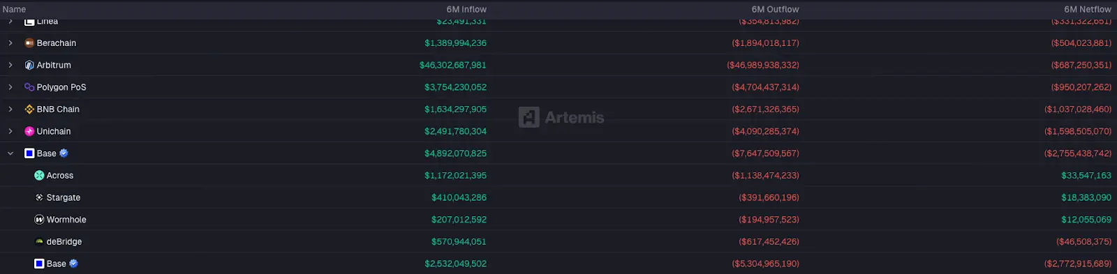 过去半年,Base的资金一直在往外跑,六个月净流出超过27.7亿美元。对于依赖生态扩张的公链而言,资金疲软意味着开发者与用户流失风险上升。生态迫切需要通过代币引入新的激励力量,发币已成为突破流动性瓶颈的必然选择。