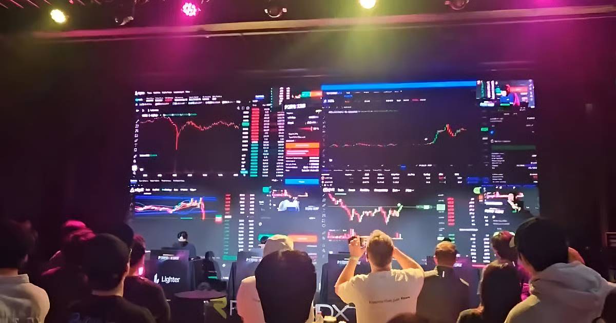而这个Perp-DEXDay做的事,就是把这种链上的高杠杆交易直接搬到线下,办成一场有观众的现场合约炒币大赛。