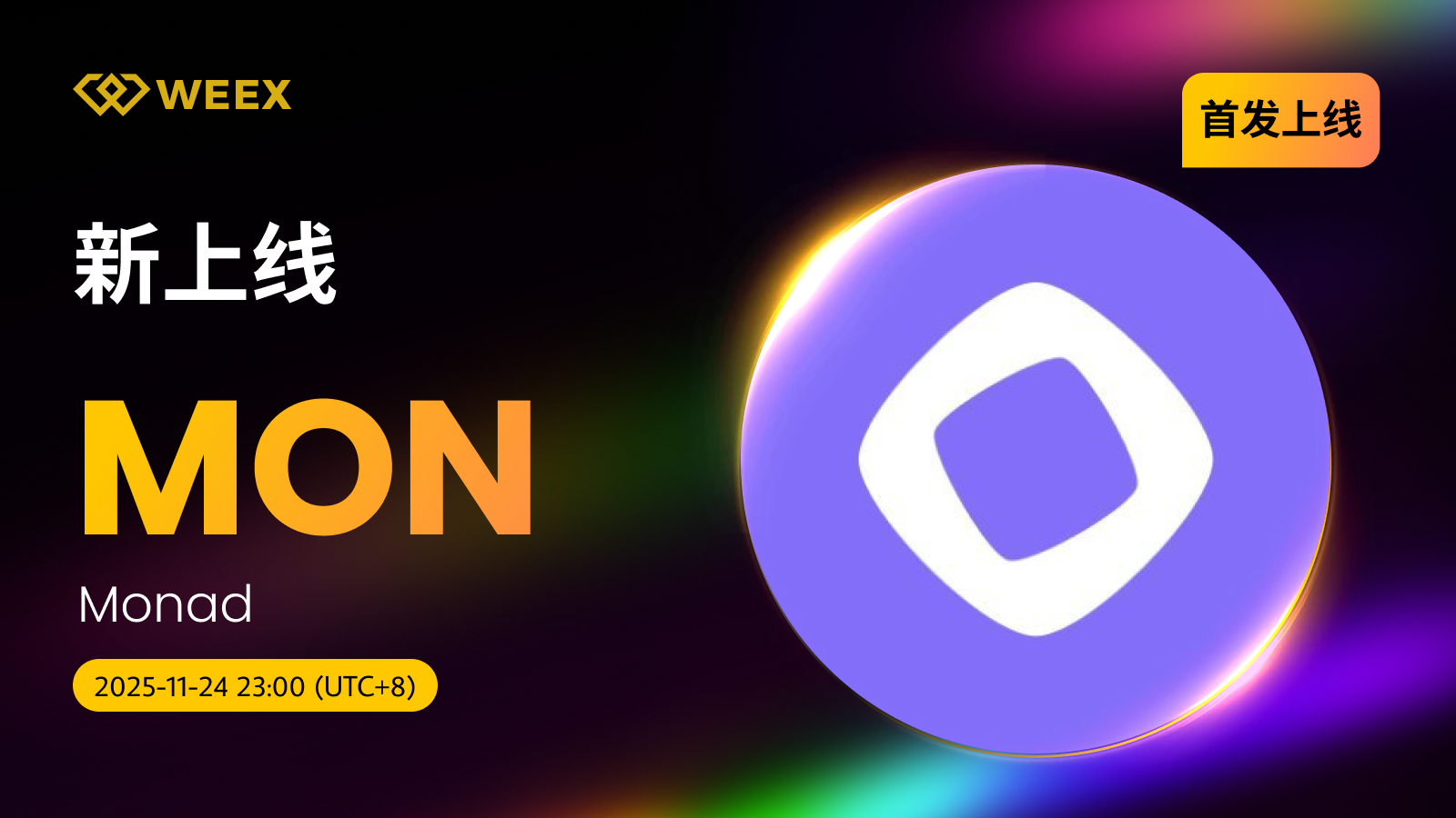 📌WEEX已正式支持 Monad 主网,并于2025年11月24日23:00(UTC 8)全网首发上线 Monad (MON),同时同步启动全国家线宣发。