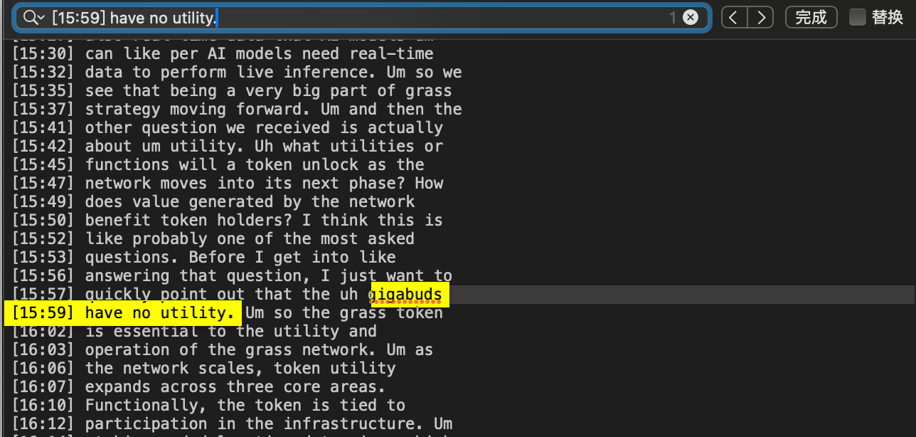 在会议进行到代币功能部分时,Grass CEO Andre说了一句:「Gigabuds have no utility」,意思是 Gigabuds没有任何功能性用途。
