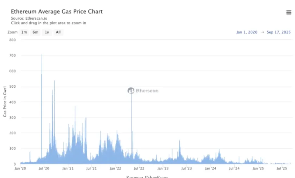 在早期阶段,公链的吞吐量极其有限,区块空间是⼀种稀缺资源。以以太坊为例,DeFi Summer 期间,在各类链上活动叠加的情况下,DEX 交互的单笔成本常常在 20–50 美元,极端拥堵时的交易成本达到数百美元。到了 NFT 时期,市场对扩容的需求和呼声更是达到顶峰。