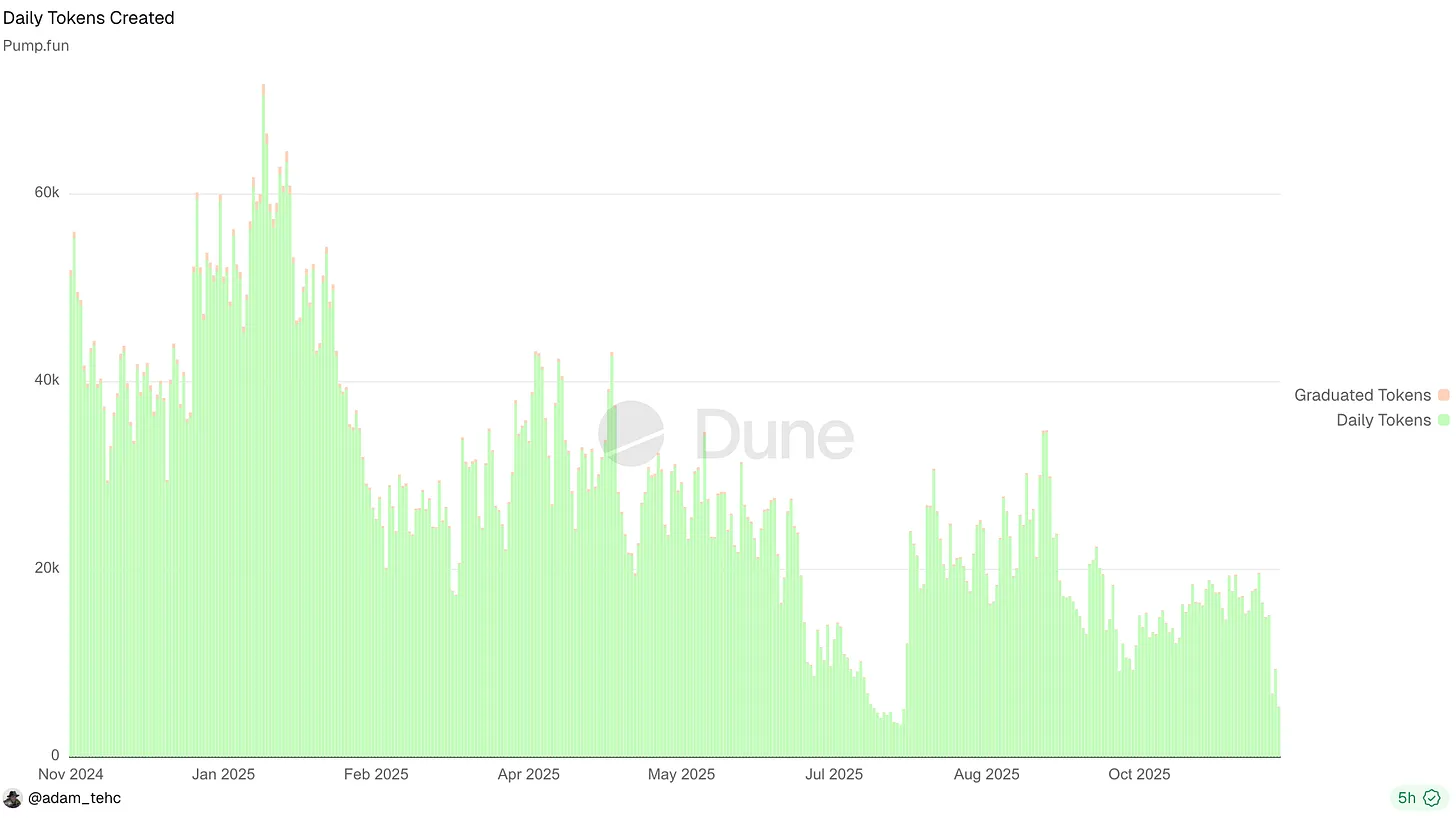 今年早些时候的许多天里,Pump 平台每天都有超过 5 万种代币 上线。