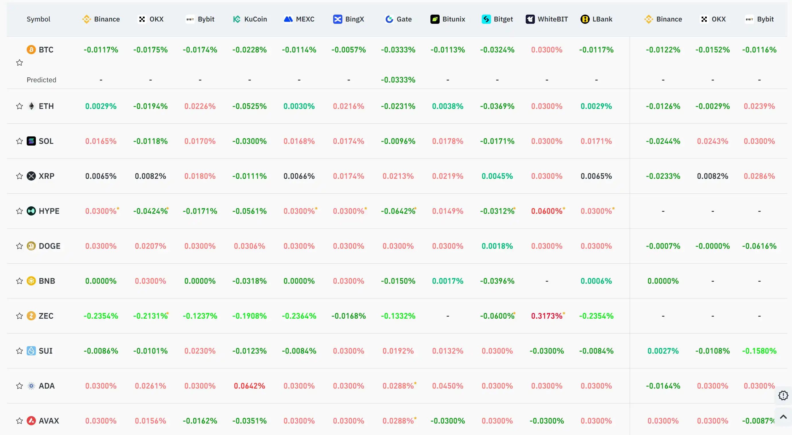 每日市场整体资金热度(根据资金费率反映)与代币解锁