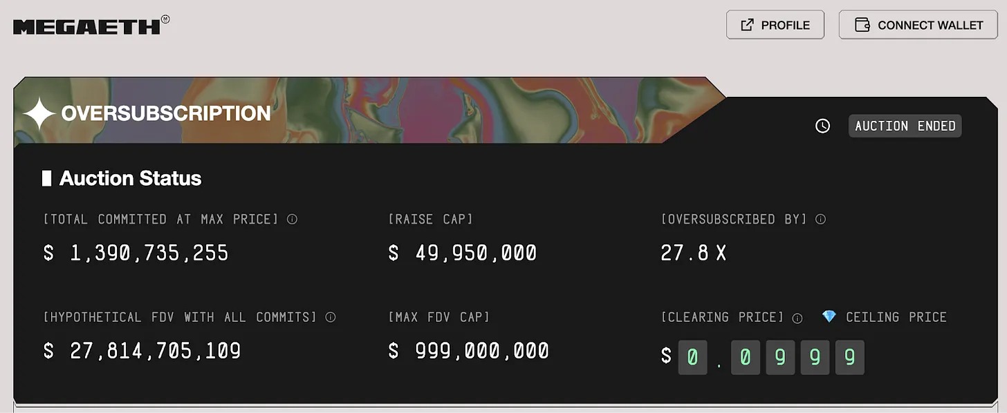MegaETH 的认购倍数约为 28 倍。该项目要求用户将他们的社交媒体个人资料和钱包与链上历史记录关联起来,以便筛选出他们认为与项目理念最契合的代币持有者名单。