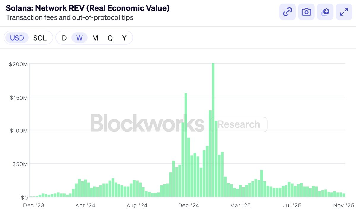 去年年底,Solana(索拉纳)非常自豪地采用了 REV(Realized Economic Value,实现经济价值)作为一个能够最终证明其估值合理性的指标。他们骄傲地宣布:我们——只有我们——不再对华尔街虚张声势了!