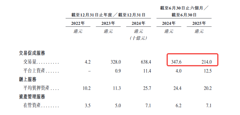 2024 年上半年,HashKey 的交易量达到 3,476 亿港元,但 2025 年上半年骤降至 2,140 亿。