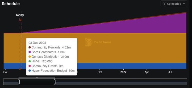 从 2025‑11‑29 起,将解锁 3.73 亿 HYPE(约占总供应的 37 %),每日约 21.5 万 HYPE,解锁期为 24 个月。按当前价格计算,这将产生约 2 亿美元 / 月 的潜在供应压力