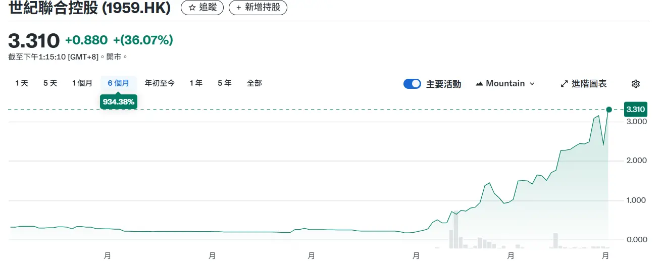 Ju.com 宣布,xBrokers 交易区的试运行股票 0XXXX.HK 在 2025 年 12 月 1 日正式合并为港股代码 01959.HK(世纪联合控股有限公司)。试运行阶段的所有持仓,按市值一键合并进真实港股账户,由持牌券商托管。01959.HK 此前已经走出一轮强势行情,如下图所示,通过 Ju.com 和 xBrokers,这只股票在保留原有港股身份的同时,被接入到面向加密用户的资金入口,传统券商通道与链上通道叠加,成了一个相当直观的 TradFi 与加密基础设施打通样本。