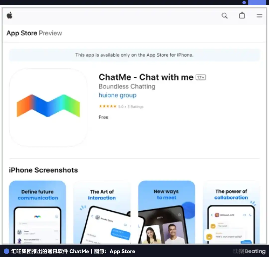 在这次大迁徙中,汇旺集团不仅是推手,更是幕后的操盘者。他们不仅入股了「土豆」,实现了业务的换壳重生,甚至开发了独立的通讯软件 ChatMe,试图构建一个完全封闭的、自给自足的数字暗黑王国。