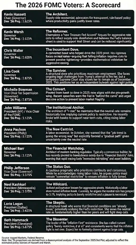 我的基本判断是:哈塞特凭借 4 票的稳固支持,以及争取到 10 票的可信路径,将能够塑造一个鸽派共识并推动他的议程落地。